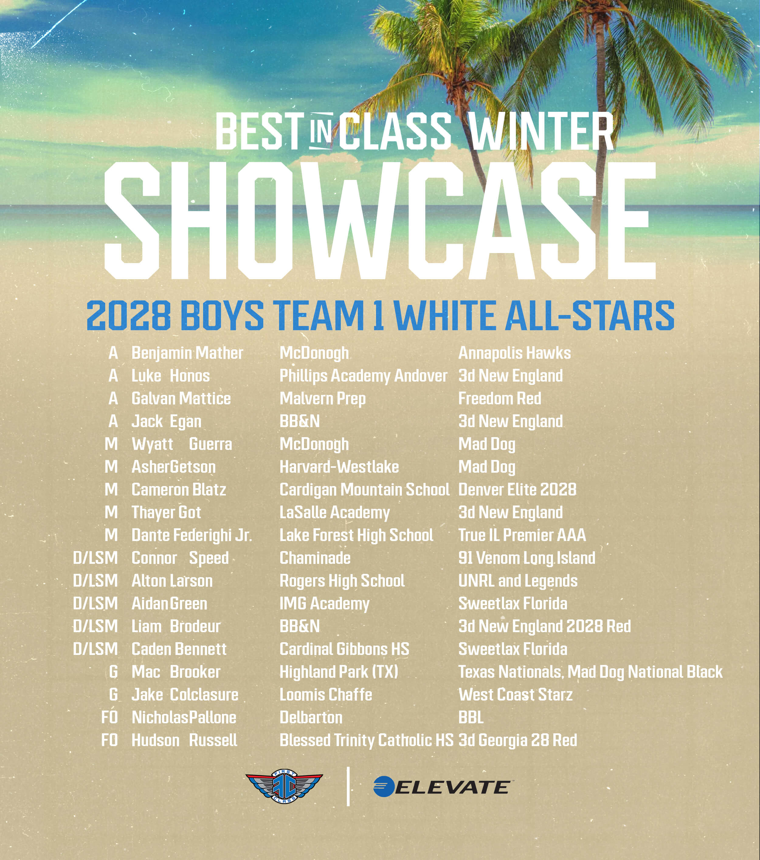 Join us for our first Winter Showcase for Men's and Women's players on January 10th, 2026!